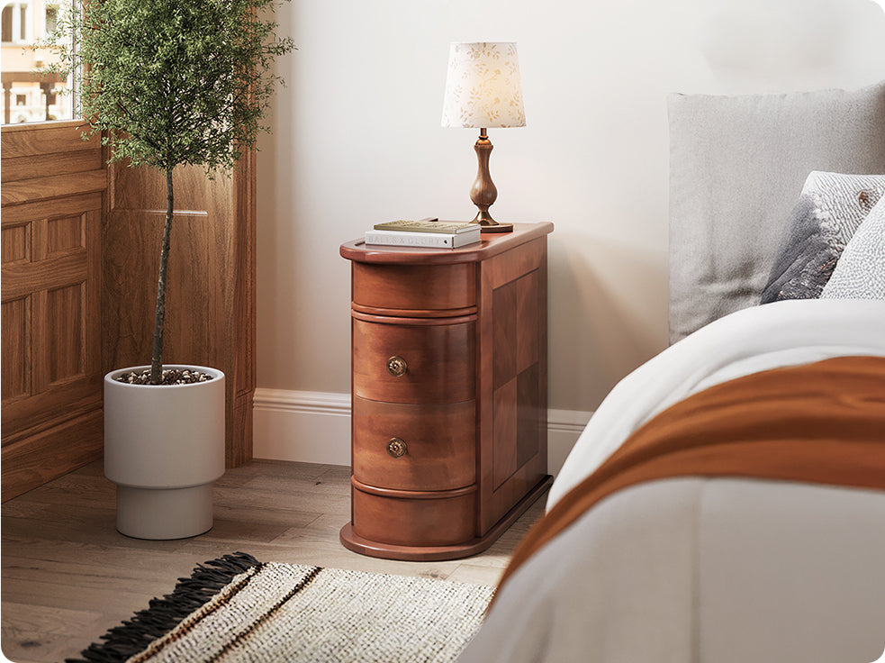 60 cm Beistelltisch mit Ablage, Naturholz Nachttisch für kleine Räume in Wohn- & Schlafzimmer