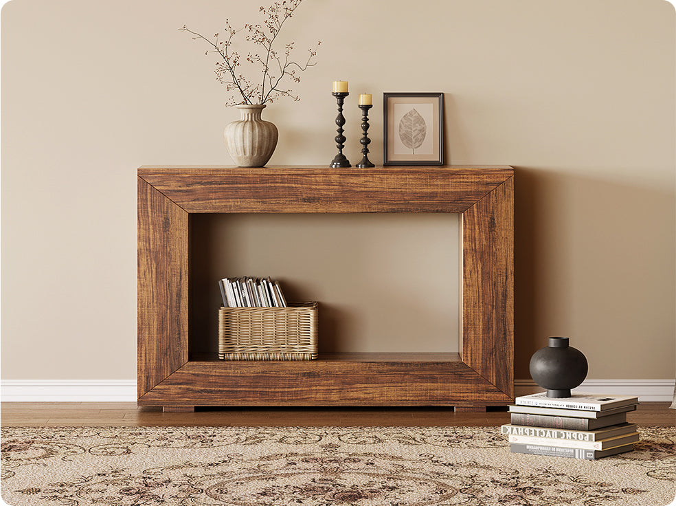 160 cm Holzkonsolentisch, 2-stufiger Bauernhaus-Eingangstisch